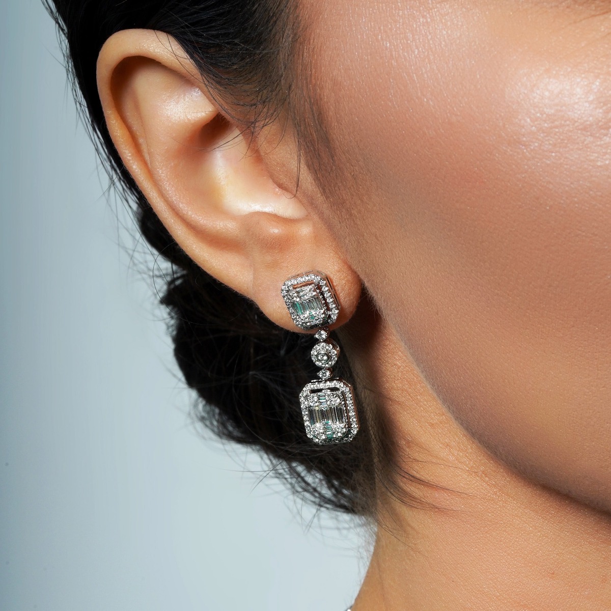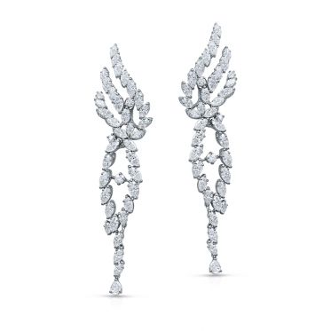 Drop Earrings: Drop earrings suspend lightly from the ear lobe dangling with movement. Our collection of drop diamond earrings dazzle like stars to brighten your day and beautify your smile. Explore our Nouf collection and Red-Carpet Collection for intricately crafted drop earrings adorned with precious and semi-precious stones or be blown away by our Polki diamond earring collection for a look fit for royalty.
