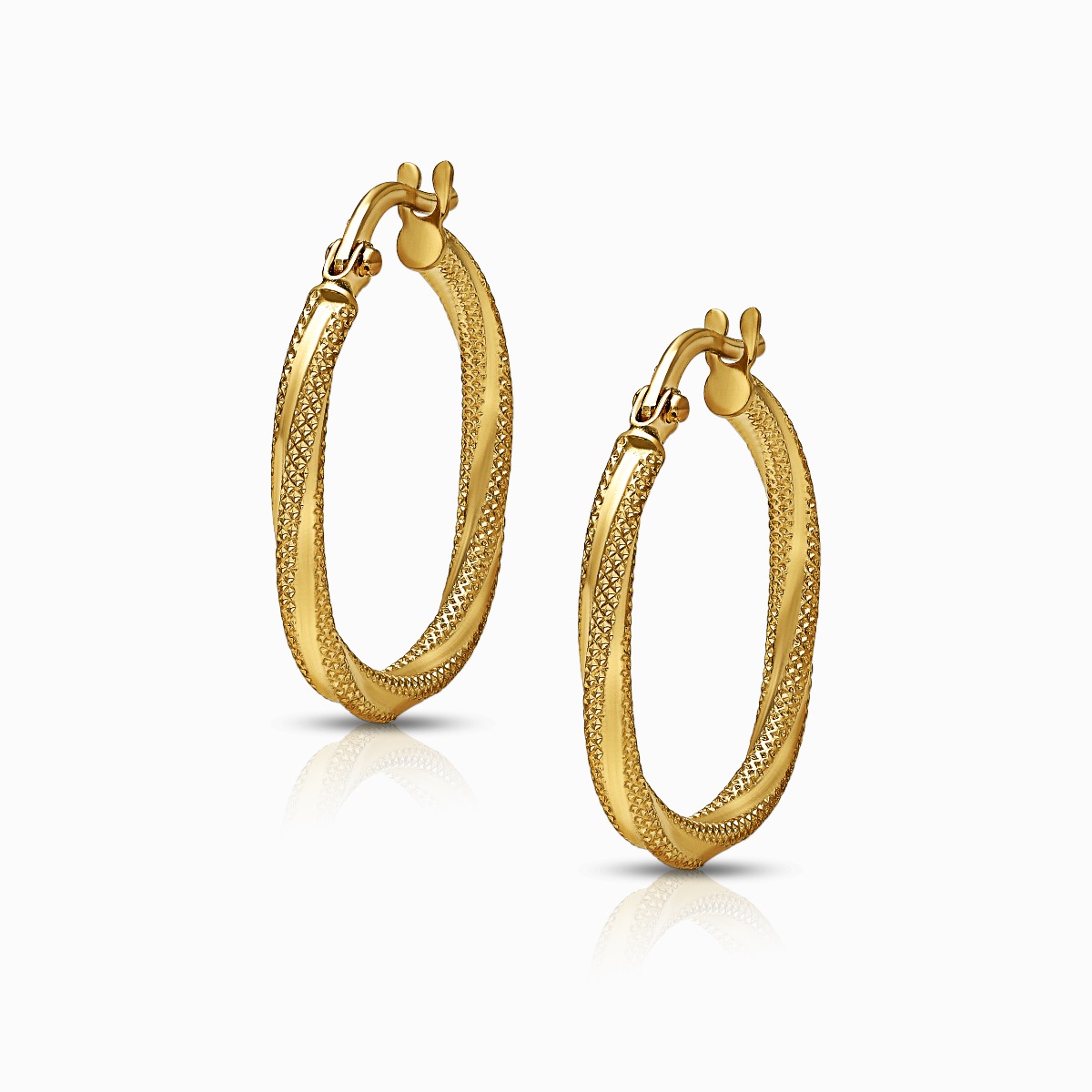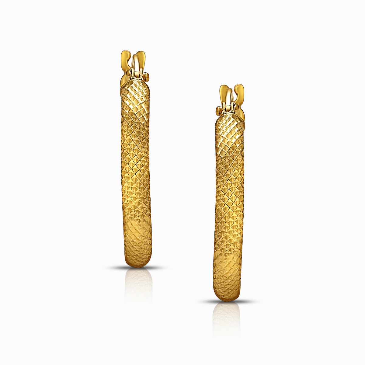 Our gold earrings are crafted using high-quality gold with varying purity levels, typically ranging from 18 karat to 22 karat, ensuring a luxurious shine and enduring beauty.
