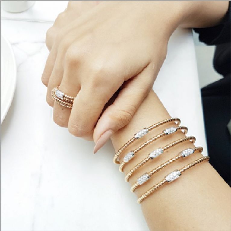 Our collection features a diverse range of bracelets, from classic gold pieces that exude warmth and charm to dazzling diamond creations that catch the light with every movement.